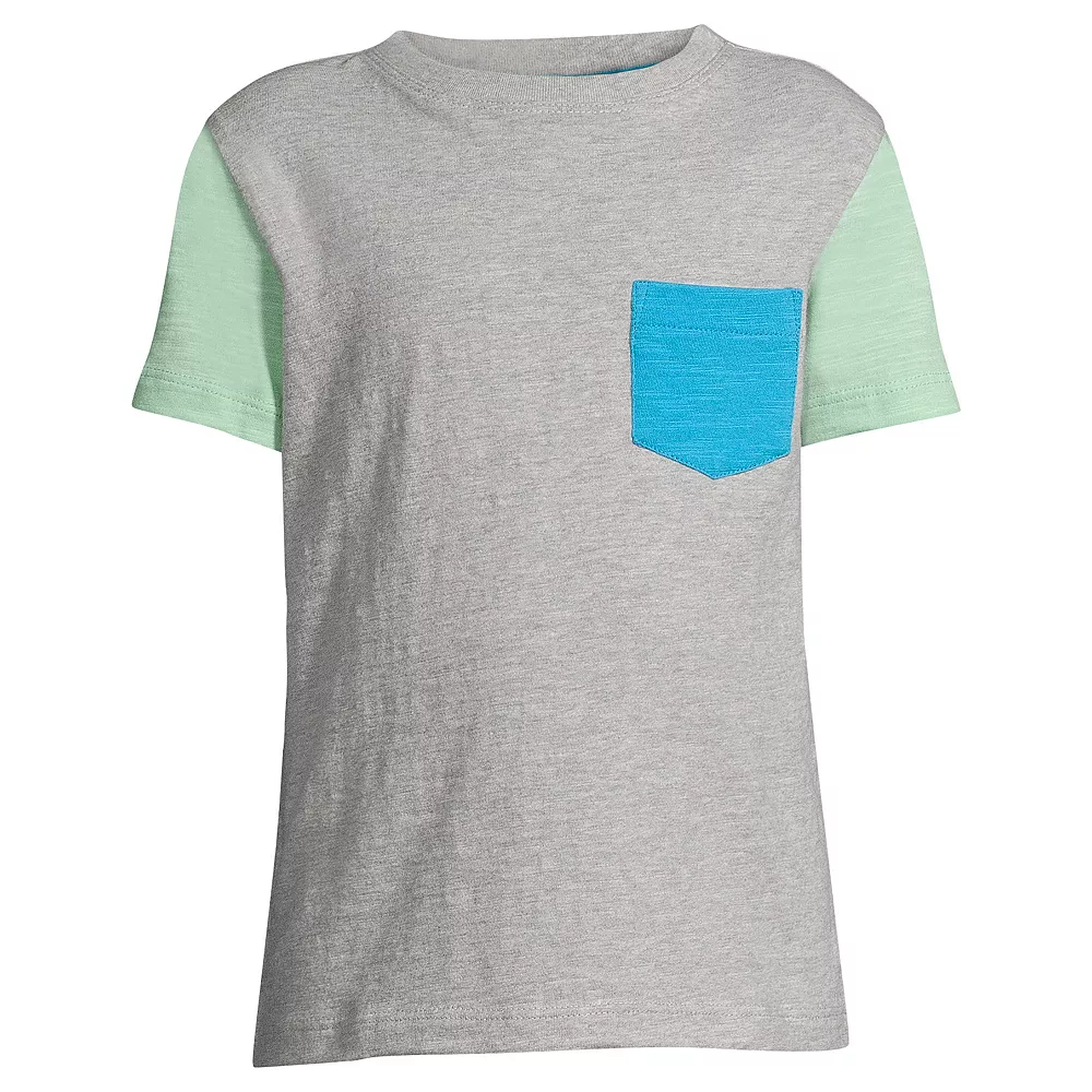 Add a little cool factor to his wardrobe with this husky boys’ colorblock chest pocket tee from Lands’ End.