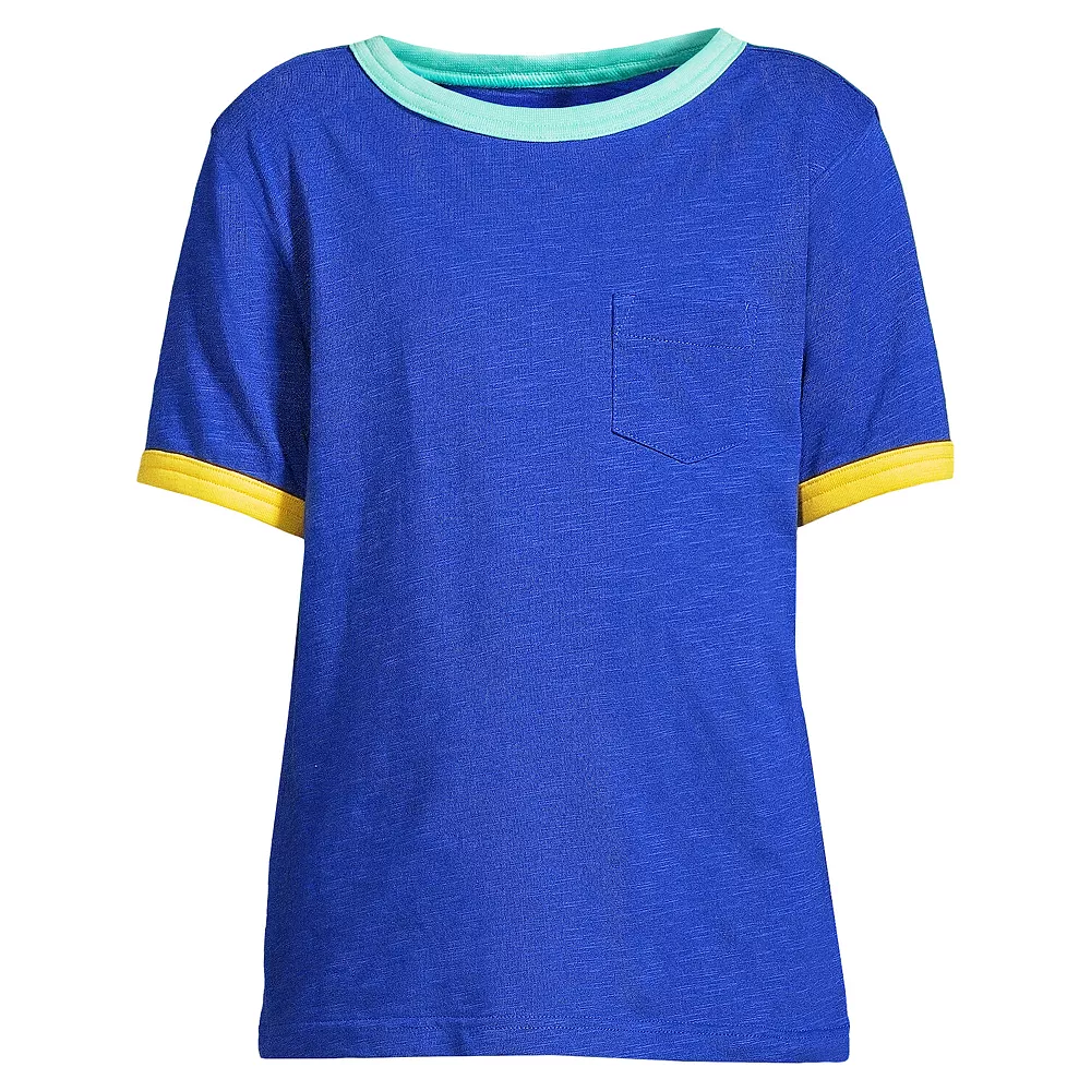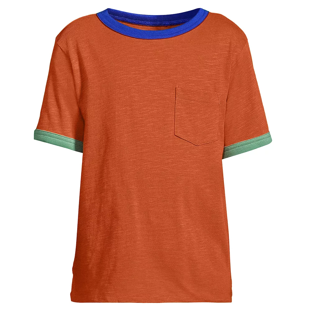 Vintage-inspired style and all-day comfort combine on this boys’ slubber ringer tee from Lands’ End.