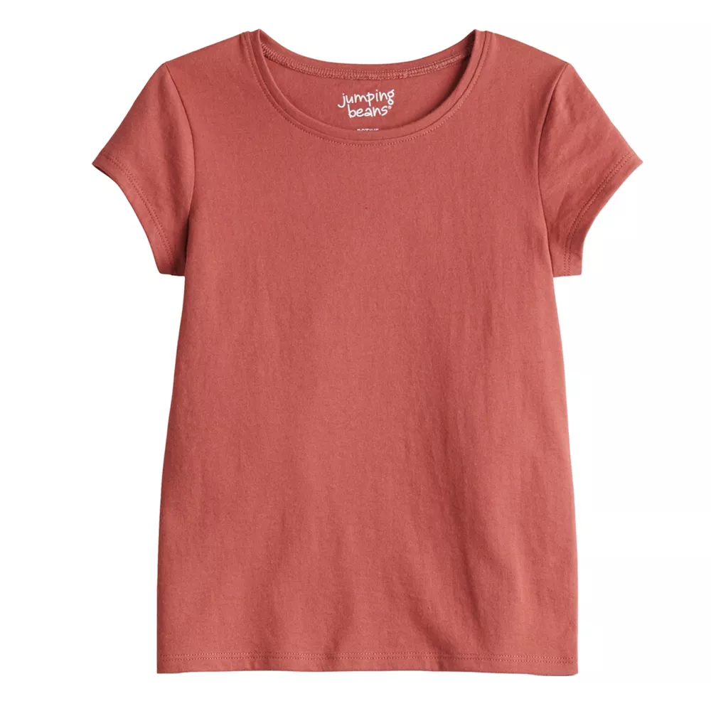 Keep her look classic in this girls’ essential crewneck tee from Jumping Beans.