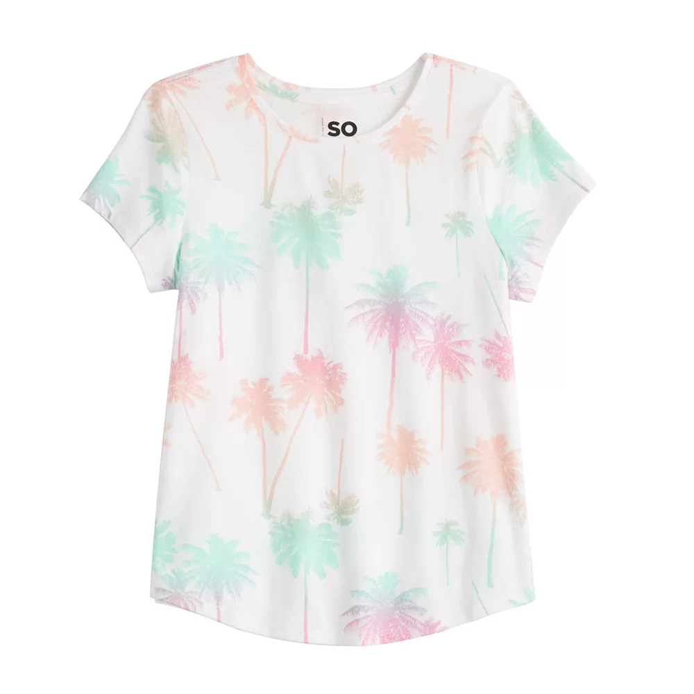 Casual comfort is effortless with this girls’ printed tee from SO.