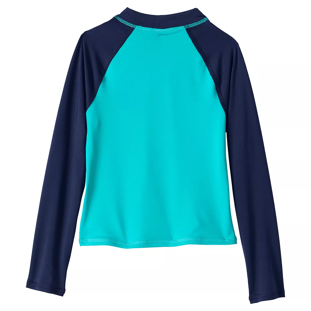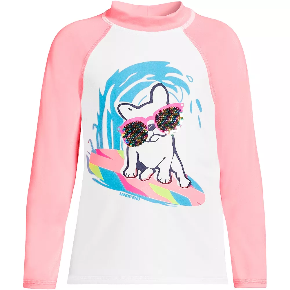 She’ll be ready for fun in the sun when she matching this girls’ Lands’ End rash guard with some fun swim bottoms.