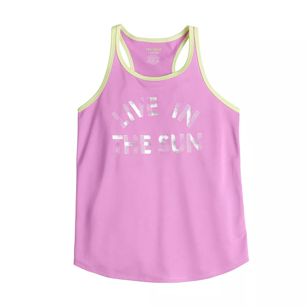 She’ll get a move on in this sporty Tek Gear girls’ tank top featuring a motivational graphic.