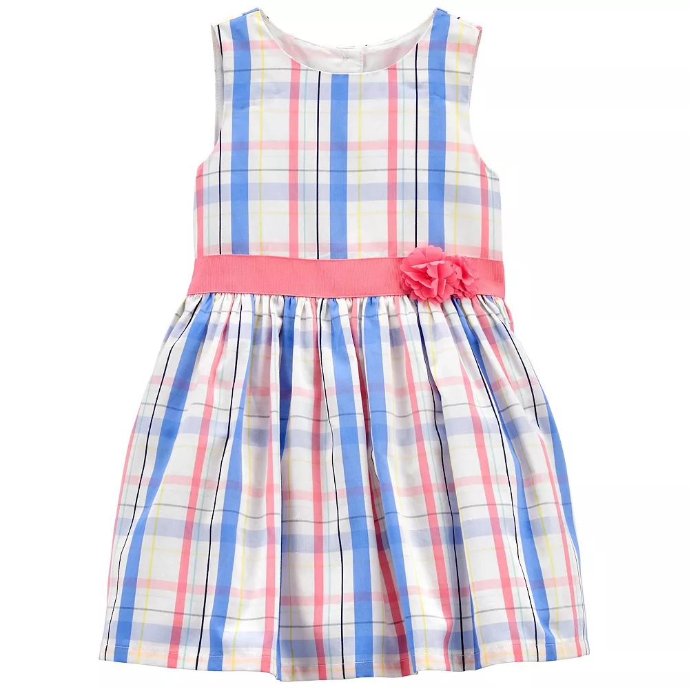 Give her a cute and classic look with this girls’ Carter’s plaid sateen dress.